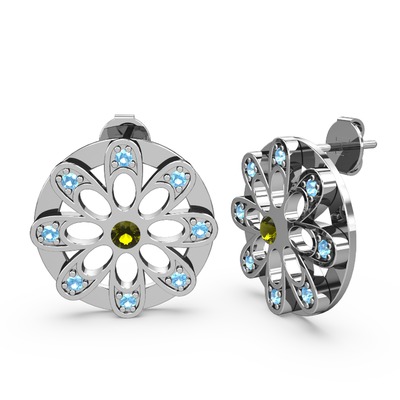 Akuamarin ve peridot 18 ayar beyaz altın küpe