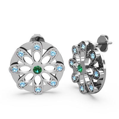 Akuamarin ve yeşil kuvars 14 ayar beyaz altın küpe