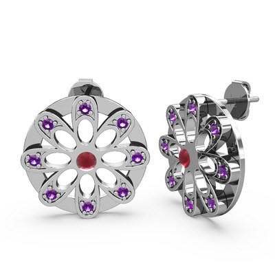 Ametist ve kök yakut 925 ayar gümüş küpe