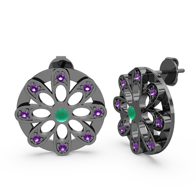 Ametist ve kök zümrüt 925 ayar siyah rodyum kaplama gümüş küpe