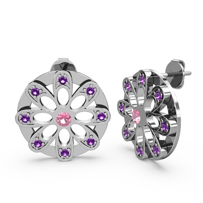 Ametist ve pembe kuvars 925 ayar gümüş küpe
