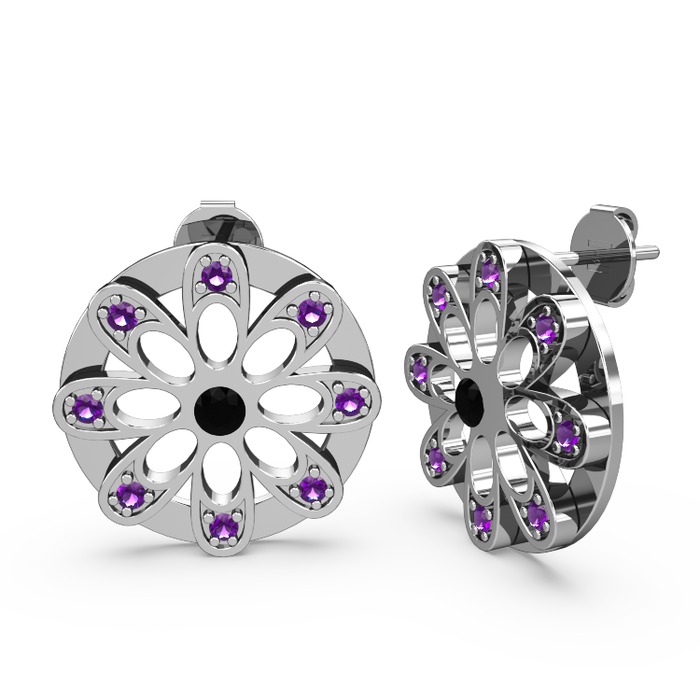 Ametist ve siyah zirkon 925 ayar gümüş küpe