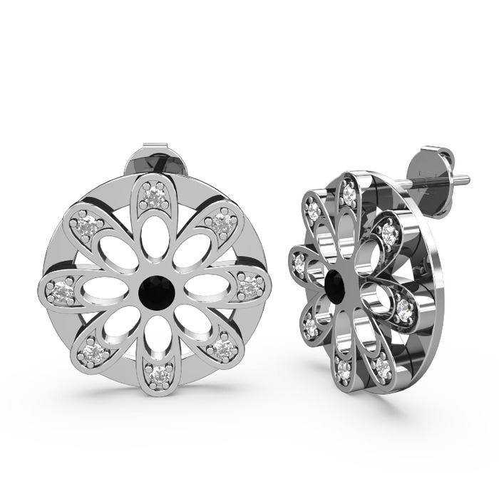 Beyaz zirkon ve siyah zirkon 18 ayar beyaz altın küpe