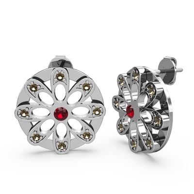 Dumanlı kuvars ve garnet 8 ayar beyaz altın küpe