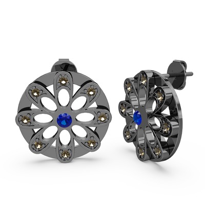 Dumanlı kuvars ve lab safir 925 ayar siyah rodyum kaplama gümüş küpe