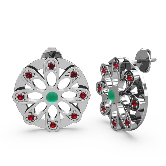 Garnet ve kök zümrüt 8 ayar beyaz altın küpe