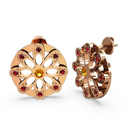 Garnet ve sitrin 925 ayar rose altın kaplama gümüş küpe