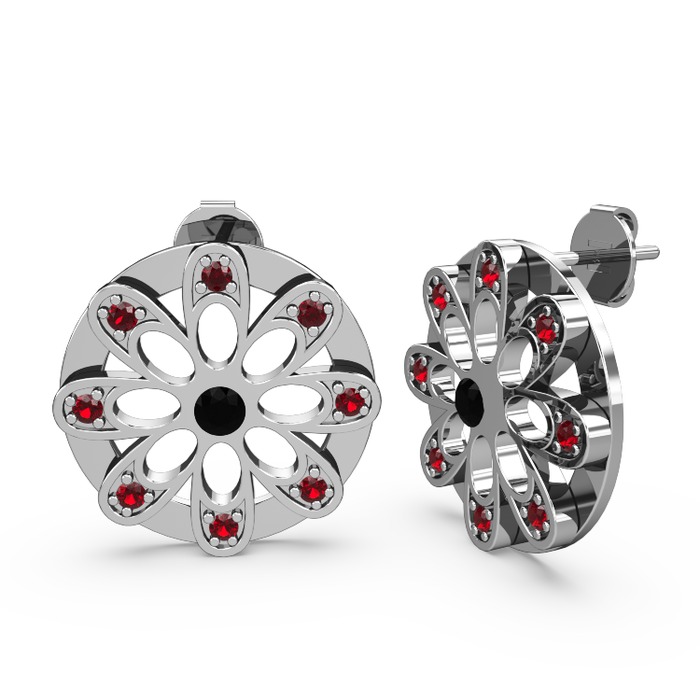 Garnet ve siyah zirkon 925 ayar gümüş küpe