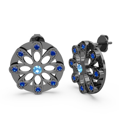 Lab safir ve akuamarin 925 ayar siyah rodyum kaplama gümüş küpe