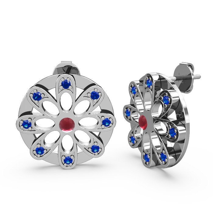 Lab safir ve kök yakut 8 ayar beyaz altın küpe