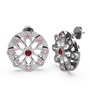 Pembe kuvars ve garnet 14 ayar beyaz altın küpe