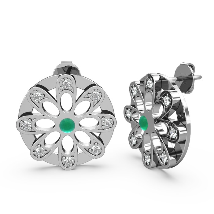 Pırlanta ve kök zümrüt 925 ayar gümüş küpe (0.24 karat)