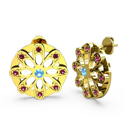 Rodolit garnet ve akuamarin 18 ayar altın küpe