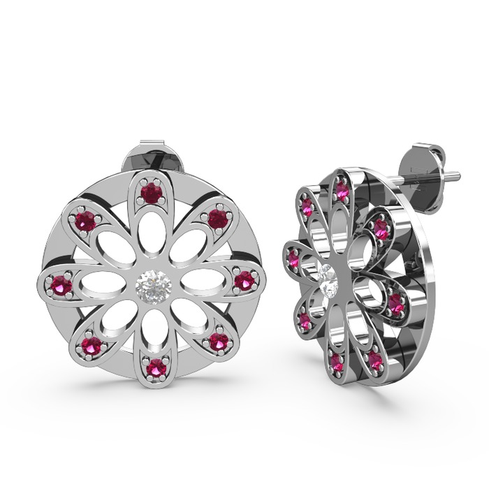 Rodolit garnet ve swarovski 14 ayar beyaz altın küpe