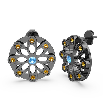 Sitrin ve akuamarin 925 ayar siyah rodyum kaplama gümüş küpe