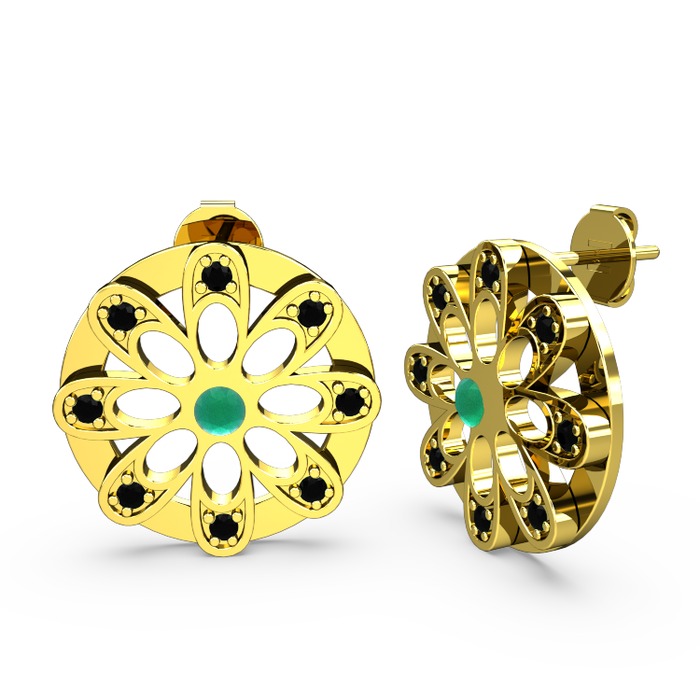Siyah zirkon ve kök zümrüt 8 ayar altın küpe