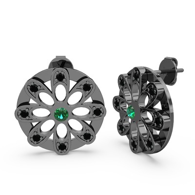 Siyah zirkon ve yeşil kuvars 925 ayar siyah rodyum kaplama gümüş küpe