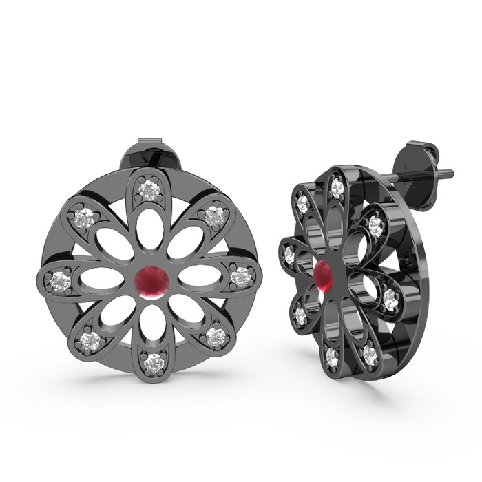 Swarovski ve kök yakut 925 ayar siyah rodyum kaplama gümüş küpe