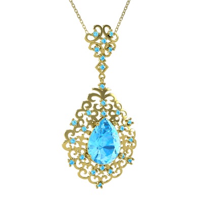 Akuamarin 18 ayar altın kolye (40 cm gümüş rolo zincir)
