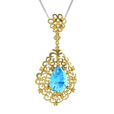 Akuamarin ve sitrin 14 ayar altın kolye (40 cm beyaz altın rolo zincir)