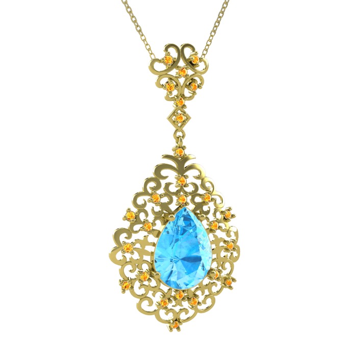 Akuamarin ve sitrin 14 ayar altın kolye (40 cm gümüş rolo zincir)
