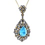 Akuamarin ve sitrin 925 ayar siyah rodyum kaplama gümüş kolye (40 cm altın rolo zincir)