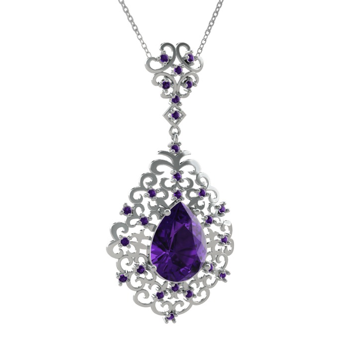 Ametist 18 ayar beyaz altın kolye (40 cm gümüş rolo zincir)