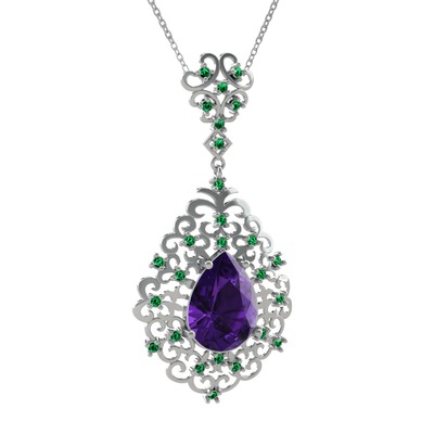 Ametist ve yeşil kuvars 8 ayar beyaz altın kolye (40 cm beyaz altın rolo zincir)