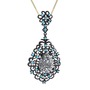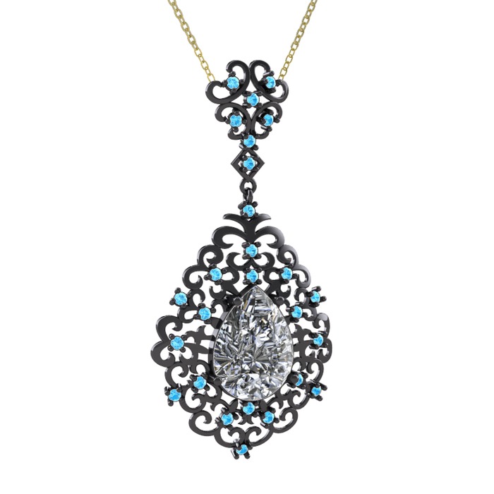 Beyaz zirkon ve akuamarin 925 ayar siyah rodyum kaplama gümüş kolye (40 cm gümüş rolo zincir)