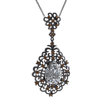 Beyaz zirkon ve dumanlı kuvars 925 ayar siyah rodyum kaplama gümüş kolye (40 cm gümüş rolo zincir)
