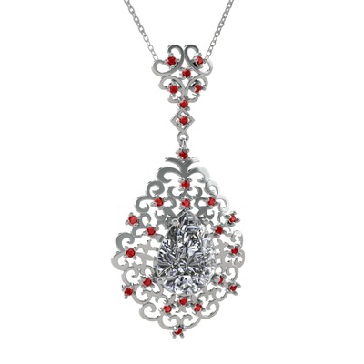 Beyaz zirkon ve garnet 18 ayar beyaz altın kolye (40 cm gümüş rolo zincir)