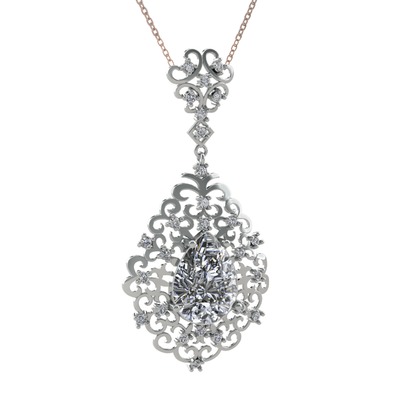 Beyaz zirkon 925 ayar gümüş kolye (40 cm rose altın rolo zincir)