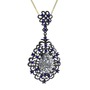 Beyaz zirkon ve lab safir 925 ayar siyah rodyum kaplama gümüş kolye (40 cm gümüş rolo zincir)