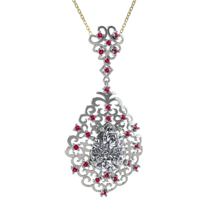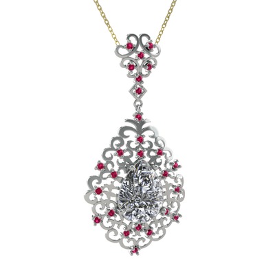 Beyaz zirkon ve rodolit garnet 8 ayar beyaz altın kolye (40 cm gümüş rolo zincir)
