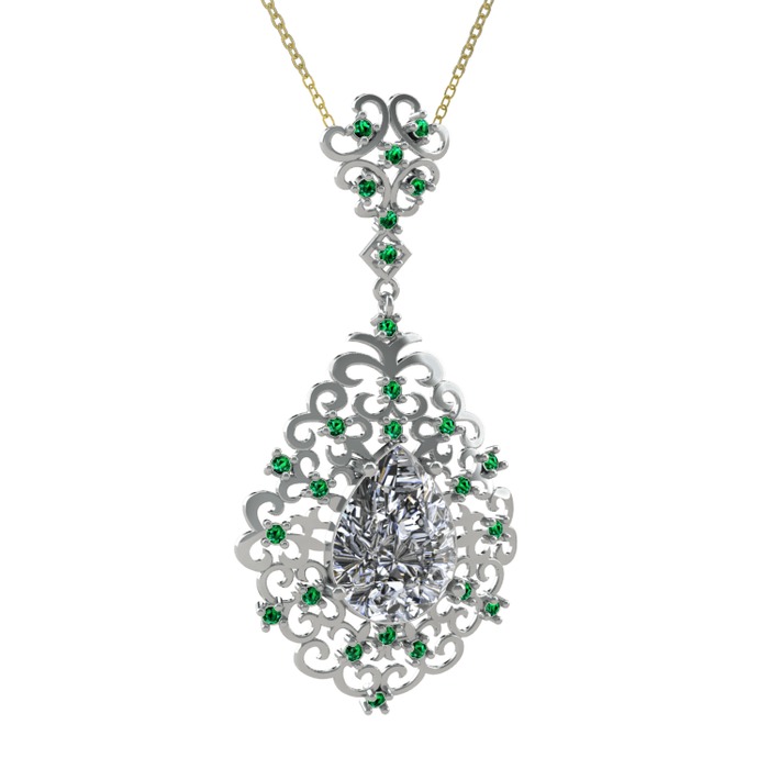 Beyaz zirkon ve yeşil kuvars 8 ayar beyaz altın kolye (40 cm altın rolo zincir)