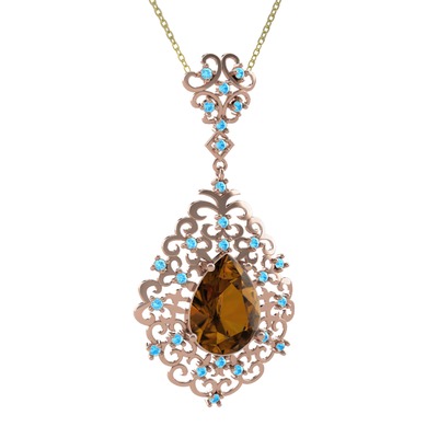 Dumanlı kuvars ve akuamarin 8 ayar rose altın kolye (40 cm altın rolo zincir)
