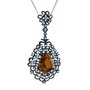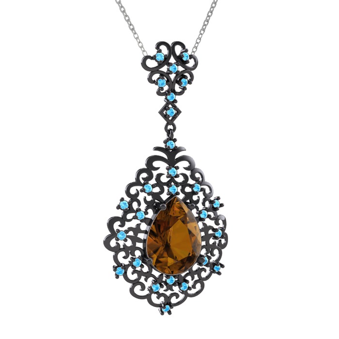 Dumanlı kuvars ve akuamarin 925 ayar siyah rodyum kaplama gümüş kolye (40 cm gümüş rolo zincir)