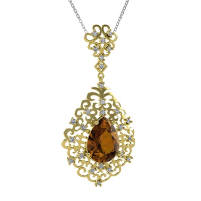 Dumanlı kuvars ve beyaz zirkon 18 ayar altın kolye (40 cm gümüş rolo zincir)