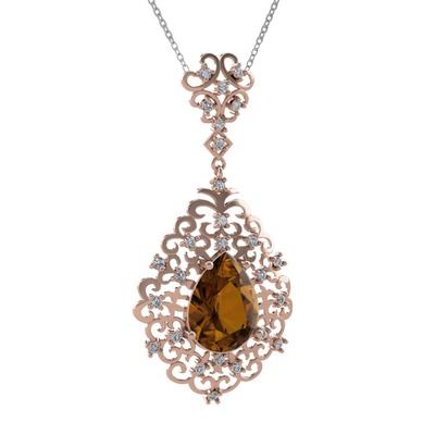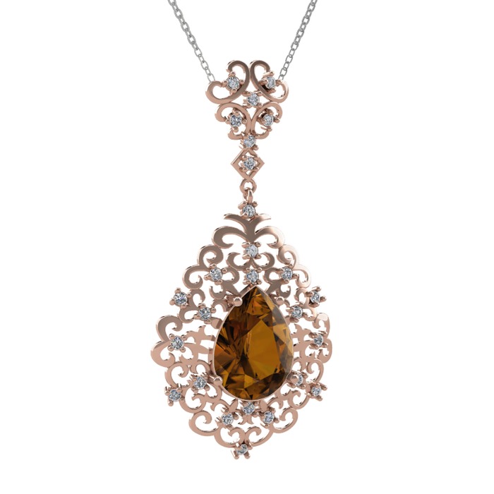 Dumanlı kuvars ve beyaz zirkon 18 ayar rose altın kolye (40 cm gümüş rolo zincir)