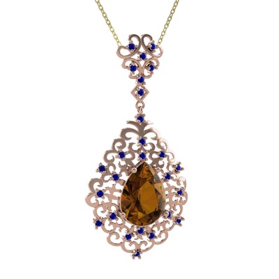 Dumanlı kuvars ve lab safir 8 ayar rose altın kolye (40 cm altın rolo zincir)
