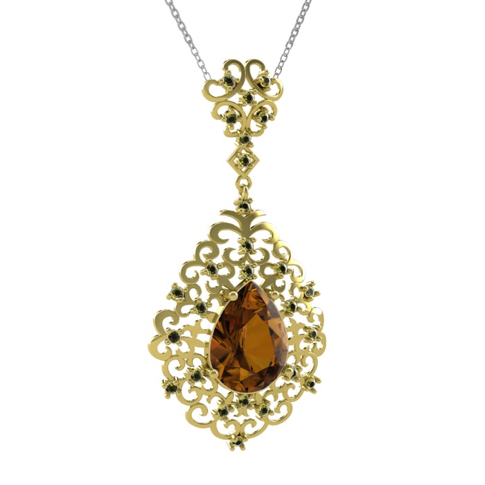 Dumanlı kuvars ve peridot 925 ayar altın kaplama gümüş kolye (40 cm gümüş rolo zincir)