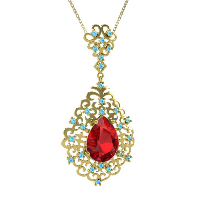 Garnet ve akuamarin 925 ayar altın kaplama gümüş kolye (40 cm altın rolo zincir)