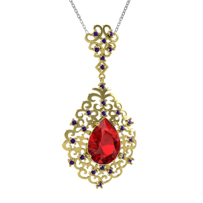 Garnet ve ametist 14 ayar altın kolye (40 cm beyaz altın rolo zincir)