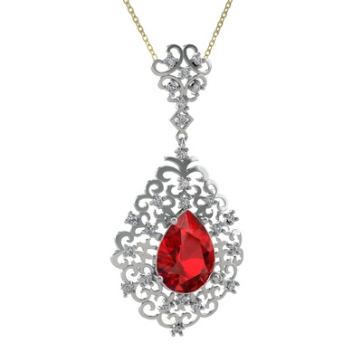 Garnet ve beyaz zirkon 925 ayar gümüş kolye (40 cm altın rolo zincir)