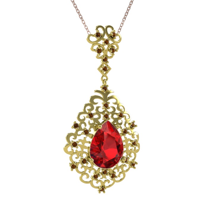 Garnet ve dumanlı kuvars 18 ayar altın kolye (40 cm gümüş rolo zincir)