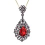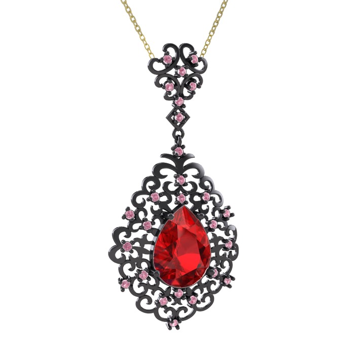 Garnet ve pembe kuvars 925 ayar siyah rodyum kaplama gümüş kolye (40 cm altın rolo zincir)