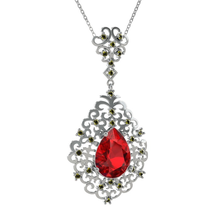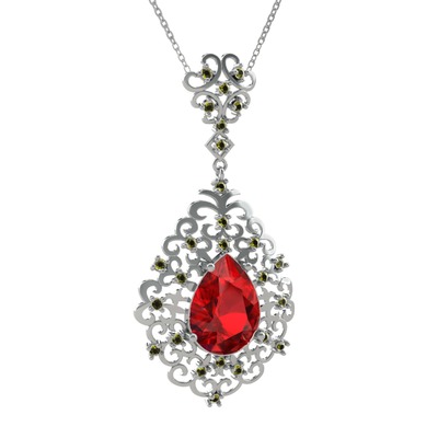 Garnet ve peridot 925 ayar gümüş kolye (40 cm beyaz altın rolo zincir)