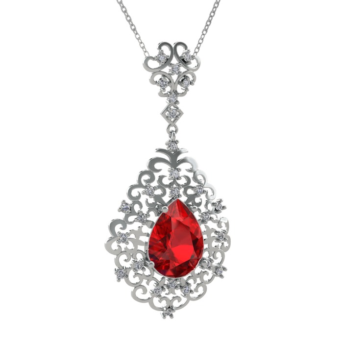 Garnet ve pırlanta 8 ayar beyaz altın kolye (0.52 karat, 40 cm gümüş rolo zincir)