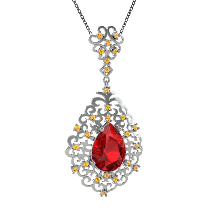Garnet ve sitrin 14 ayar beyaz altın kolye (40 cm gümüş rolo zincir)