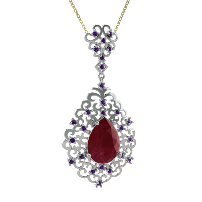 Kök yakut ve ametist 925 ayar gümüş kolye (40 cm altın rolo zincir)